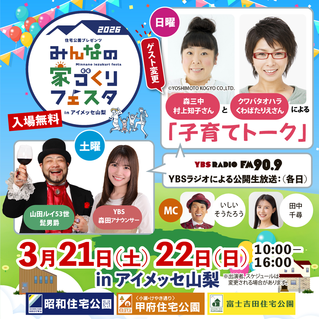 3/21(土)・22(日)「住宅公園プレゼンツ みんなの家づくりフェスタinアイメッセ山梨」に登場!